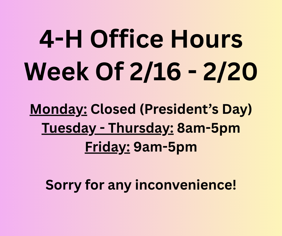 Our office hours for the week of February 16th to February 20th can be found here